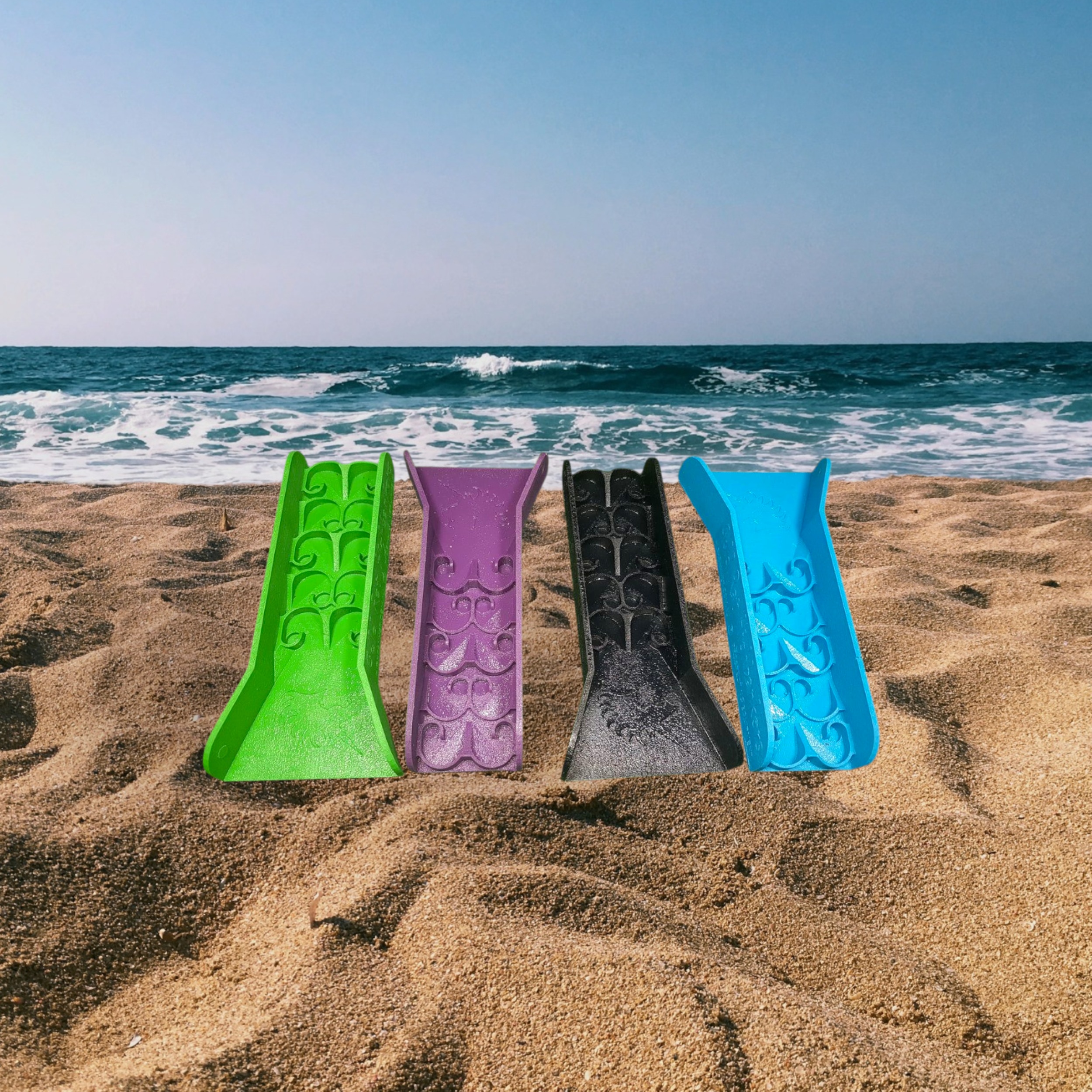 Green, blue, purple and black